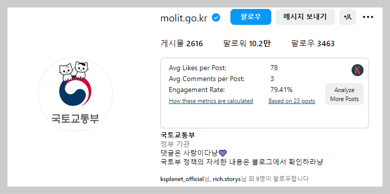 이벤트는 8월 8일 국토교통부 인스타그램에 공지가 되면서 시작됩니다. 아래 국토부의 인스타그램을 방문하시면 국토부에서 공지하는 내용을 가장 빠르게 확인하실 수 있습니다.