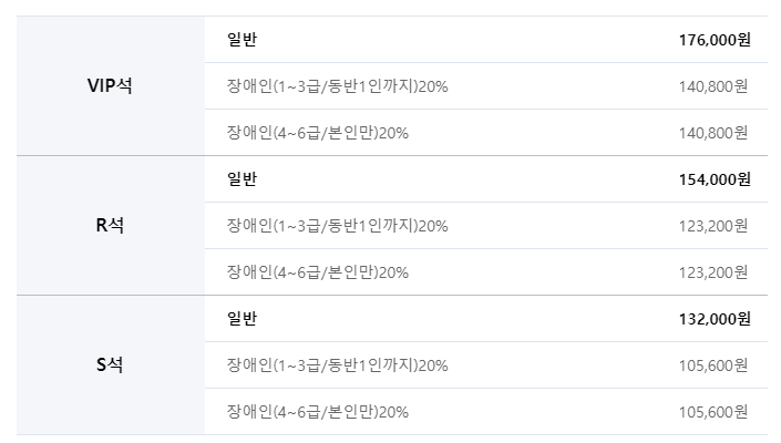 - VIP석은 176,000원